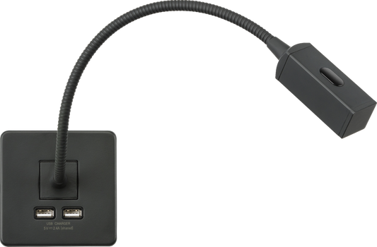 Knightsbridge SFRLAT 1 Gang 2W LED Reading Light with Dual A Type USB Outlet Anthracite